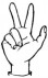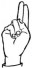 На ћирилици написано ЛАБУДА ДРАГОЈЛОВИЋ састоји се из 17 слова [?]. Исписано ћириличном једноручном азбуком за глувонеме: